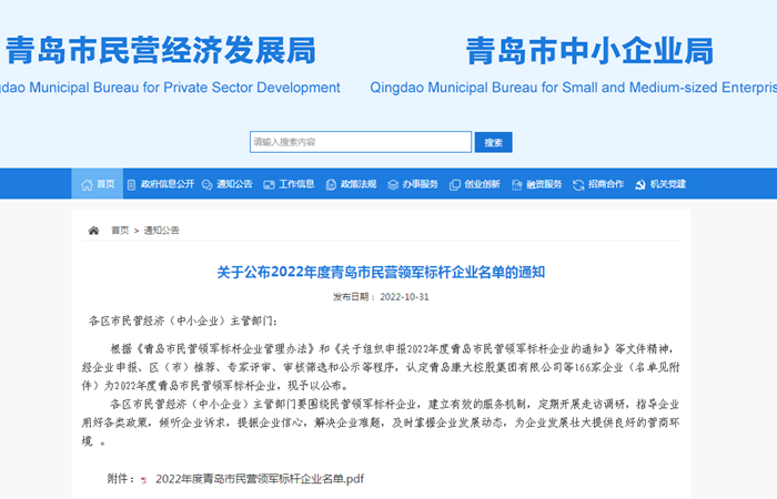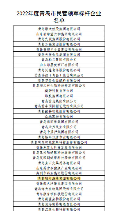 日前,青島市民營經濟(中小企業(yè))發(fā)展工作領導小組辦公室公布了2022年度青島市民營領軍標桿企業(yè)名單,這是青島首次評選民營領軍標桿企業(yè)。青島明月海藻集團光榮上榜,成為“2022年度青島市民營領軍標桿企業(yè)”。