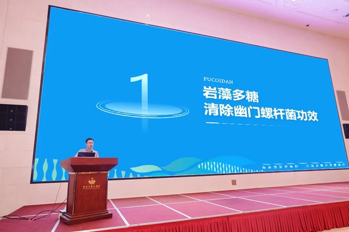 此次大會,明月海藻生物健康科技集團副總裁、海藻活性物質國家重點實驗室-巖藻多糖研究室主任孫占一應邀參加未來功能食品專場演講,分享《巖藻多糖 保胃健康 腸享生活》。從巖藻多糖在胃腸道健康領域的功效研究著手,講述巖藻多糖帶來一種全新的胃腸道健康解決方案,特別是備受關注的去除幽門螺桿菌解決方案,為客戶提供安心且高效的清幽新選擇。