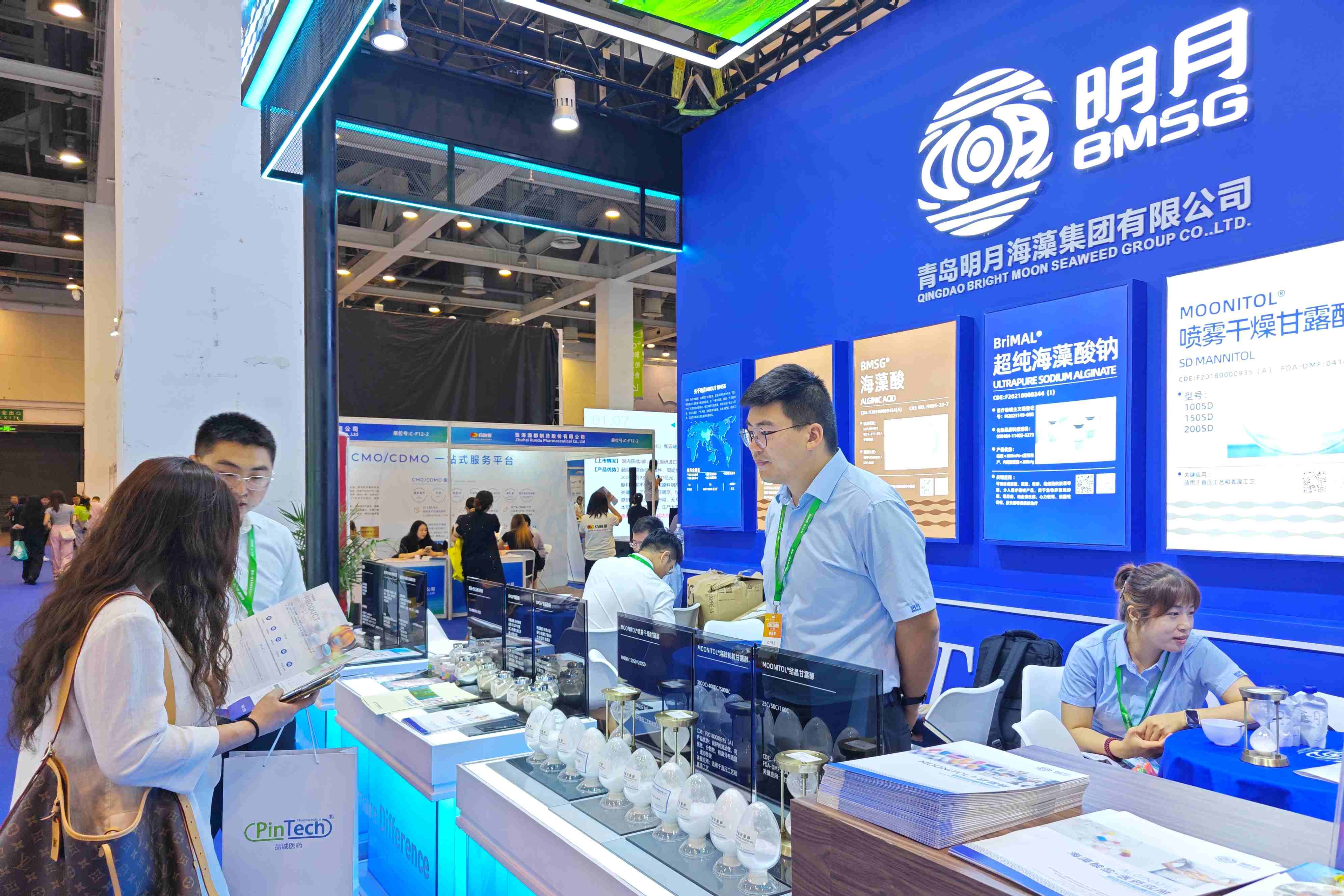 作為全球“海藻+健康”解決方案的領(lǐng)導(dǎo)者,明月攜多款核心產(chǎn)品精彩亮相,包括海藻酸鈉、海藻酸、甘露醇、山梨醇、超純海藻酸鈉等,展示了源自海洋的創(chuàng)新力量如何助力醫(yī)藥行業(yè)的可持續(xù)升級(jí)。展位現(xiàn)場(chǎng),明月專業(yè)的銷售與研發(fā)團(tuán)隊(duì)與眾多客戶深入交流,獲得廣泛關(guān)注與合作意向。